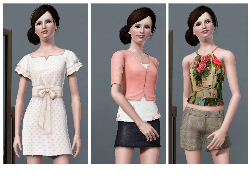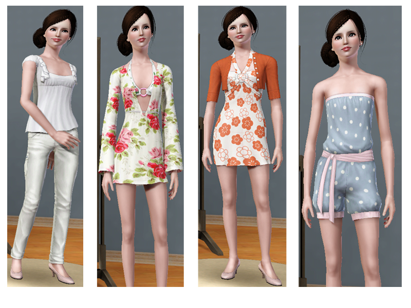 So I was quite excited to put my hands on outdoor living stuff! I knew what to expect for the objects. They are really amazing and goes perfectly with the type of houses I enjoy to build. But what surprised me was the clothes that came with the pack. For now I just had the chance to check the female clothes; and I’m already in love! For that I took some screenshots, and then you can see what I’m talking about ;D